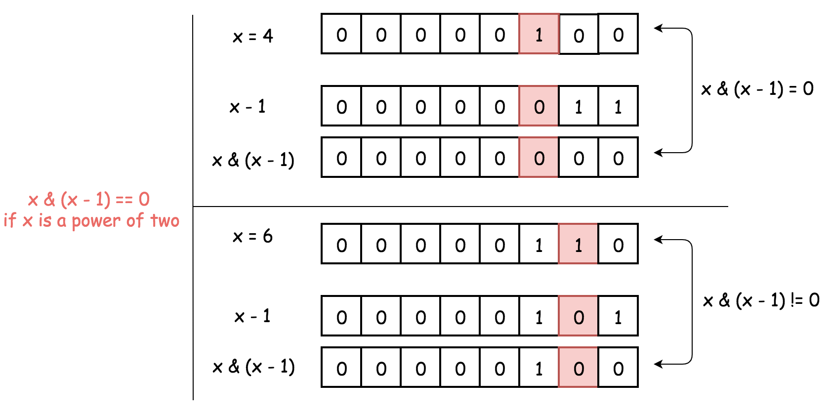 An integer n is a power of two, if there exists an integer x such that \(n = 2^x\). Example: \(2, 4, 8, 16, \dots\)